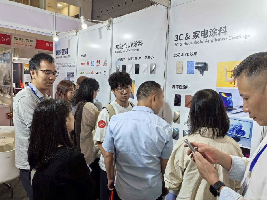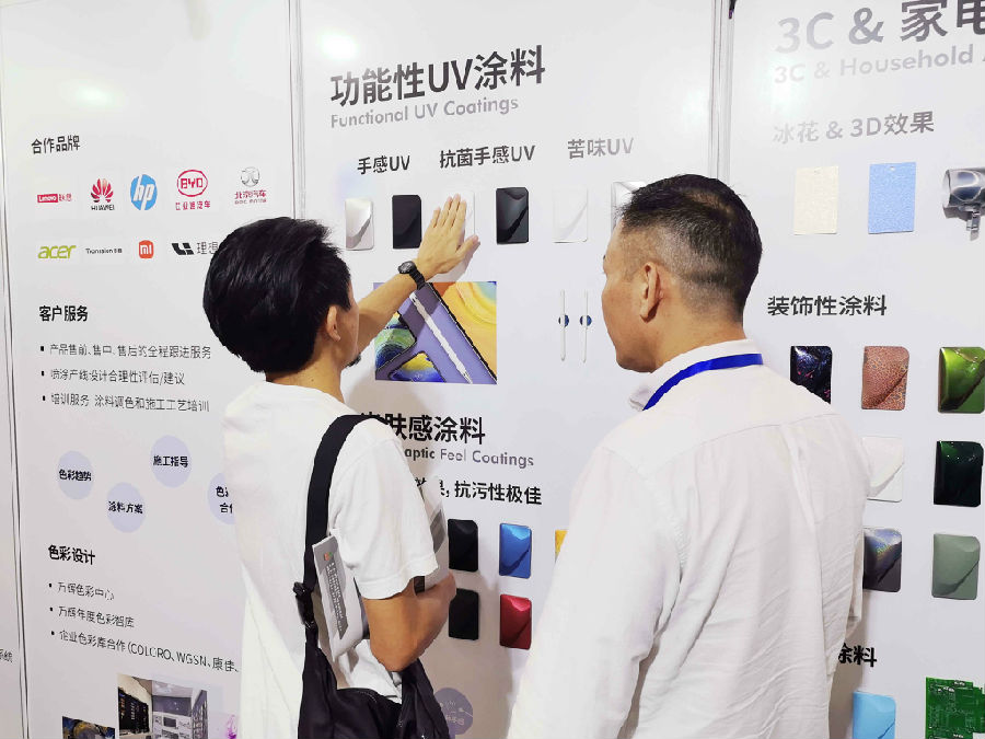 萬輝為頭部企業定制且已量產化的“功能性UV涂料”,成為了展會客戶持續關注及合作意向。
